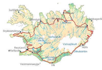 • Hraunfossar • Snæfellsnes • Tröllaskagi • Eyjafjörður • See Mývatn • Jökulsárgljúfur • Kratersee Víti • Geothermalgebiet Námaskarð • Dettifoss • Höfn • Gletscherlagune Jökulsárlón • Dyrhólaey • Landmannalaugar • Þingvellir-Nationalpark • Geysir • Gletscherwanderung • geführte Hochlandwanderung • Rafting • Reittour