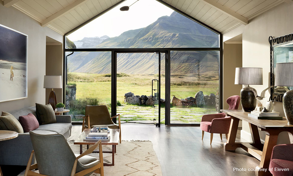 Die Deplar Farm liegt inmitten der spektakulären Landschaft Islands auf der abgelegenen Tröllaskagi-Halbinsel und ist der perfekte Ausgangspunkt für jeden, der das ganz besondere Abenteuer sucht. Die Deplar Farm fügt sich mit ihrer markanten schwarzen Holzverkleidung harmonisch in die dramatische Landschaft mit ihren schwarzen Felsen, Findlingen, Gipfeln und Tälern ein, als wäre sie schon immer da gewesen. Bei Betreten des Hauses mit seinen großzügigen und stilvoll gestalteten Räumen überkommt einen das Gefühl von Geborgenheit und gediegenem Luxus. Egal ob in der dunklen Jahreszeit des Winters mit seinen spektakulären Nordlichtern oder in den hellen Nächten des Sommers, das Haus und die Umgebung scheinen mit fantastischen Lichtstimmungen, großartigen Wolkenformationen und dem ewigen Kreislauf von Licht und Schatten meisterhaft zu spielen. Man möchte gar nicht mehr abreisen. Wie schön, dass man hier mindestens drei Tage buchen muss.