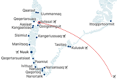 • Flug ab Keflavik nach Ilulissat und zurück, inkl. aller Steuern und Gebühren
