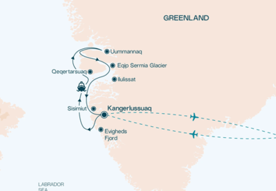 • Ewigkeitsfjord • Diskobucht • Lyngemark-Gletscher • Sisimiut • Ilulisat-Eisfjord • Uummannaq • Kangerlussuaq